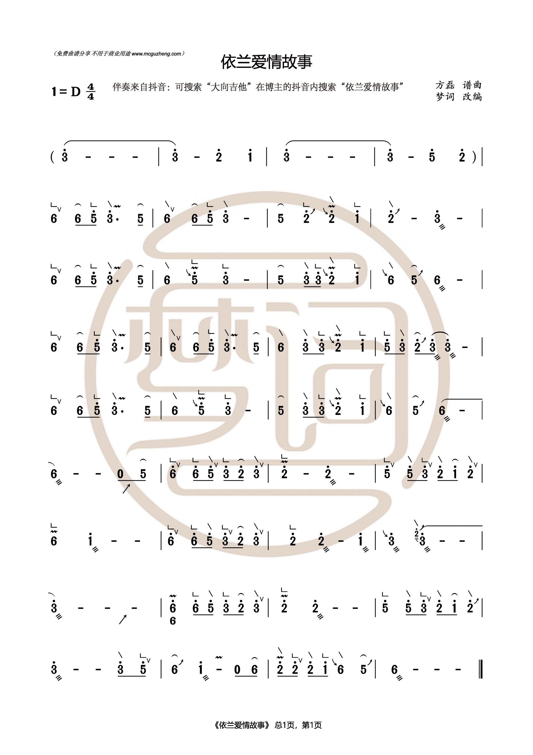伴奏来自抖音:可搜索“大向吉他”在博主的抖音内搜索“依兰爱情故事”