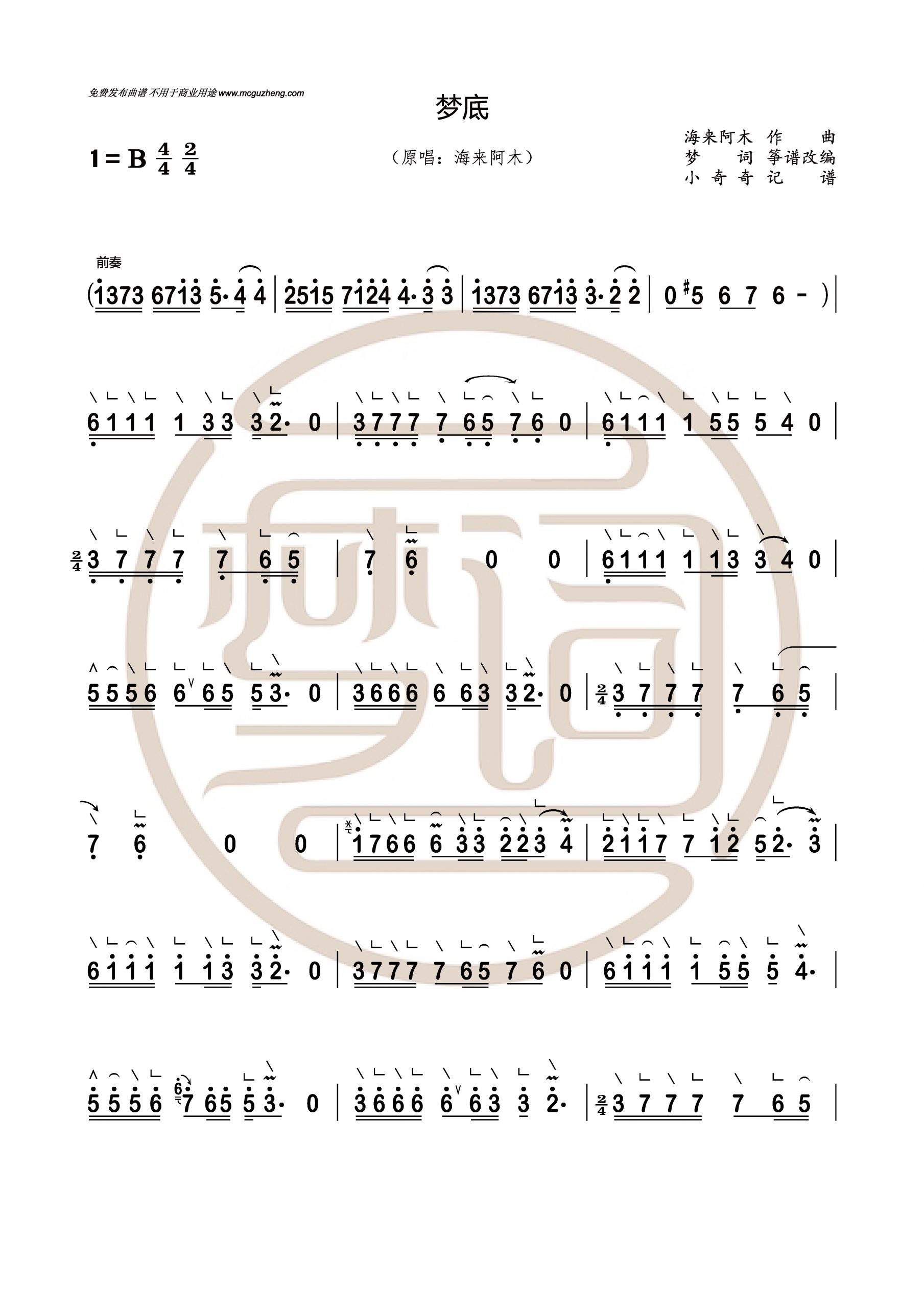 不得用于商业用途: » 《梦底》梦词改编免费曲谱 B调 伴奏版